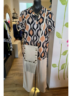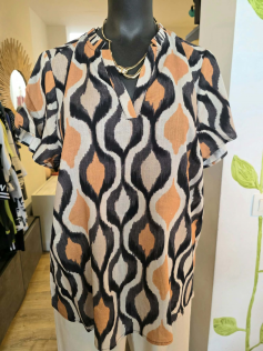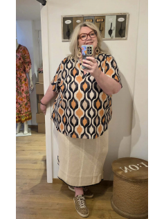 La petite blouse qui tombe super bien et qui est vraiment très très jolie. En 82% viscose et 18% lin. Hauteur environ 73 cm. Très facile à porter sur un pantalon en lin, un jeans, une jupe aussi !